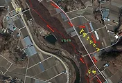 ▲ 지도상의 빨간길은 도로 입니다. 차도 위쪽으로 뚝방길이 조성이 되어 있습니다. 제법 깁니다~ **
