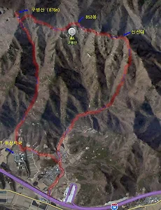 * 이 포스팅은 네이버 블로그에서 가져왔습니다. 산행 일시 : 2009 년 6 월 14일 10시 30분 - 17시 30분 (총 7시간 식사 및 휴식시간 포함) 산행 날씨 : 맑으나 시야는 흐릿... 산 행 지 : 보은 구병산 (876m) 산행 코스 : 적암휴게소 - 신선대 - 853봉 - 구병산(876m) - KT위성지국 - 적암휴게소 산행 인원 : 총 9명 (지리산총무,무지개,돌리,파란하늘,시나브로,헌규,영희,별난마녀,카첸다) ▲ 구병산 위성지도 입니다. ▲ 구병산 산행지도 입니다. ▲ 적암리 마을에서 바라본 구병산 능선 입니다. ▲ 들머리에 들어선 후 첫번째 이정표를 그냥 지나치고, 왼쪽으로 처음 나타나는 산로로 오릅니다. 초입은 산로가 좁고 나뭇가지도 많지만, 조금 오르면 이런 산로가 나타납니다. ..